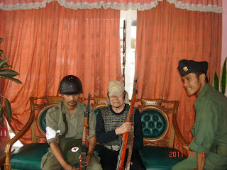 setelah itu Pak Sakari menyanyikan sebuah lagu mars tentara Jepang, lalu kami menyerahkan sepucuk replika senapan arisaka kami ditangannya, suasana hening, beliau meraba perlahan mulai ujung hingga pangkal senapan, memeriksa bagian pisir dan pejera dengan jari-jari tangan kanannya, menarik bolt, kemudian beliau berkata “ini senapan type 38”