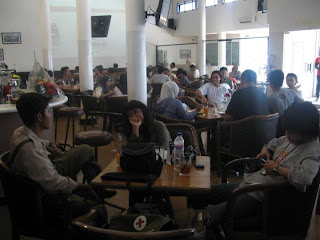Sesampai di cafe, para peserta bersantai sambil menikmati menu makanan dan minuman dan mendapat penjelasan sejarah gedung BPN oleh Prima Kirti
