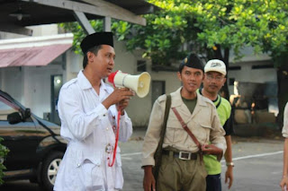 Dwi Fatrianto menyampaikan materi sejarah pertempuran. foto: Surya