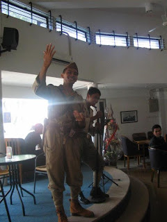 setelah puas mendapat penjelasan dari Pak Tri selaku Kepala Cabang Bank Mandiri dan puas menikmati koleksi-koleksi museum Bank Escompto mulai dari arsip, surat perjanjian, brankas kuno, mesin ketik kuno hingga data pegawai Escompto menjelang masuknya Jepang d Indonesia, para peserta naik ke lantai 2 dan mendengarkan penjelasan dari Prof Indroyono, Sesmenkokesra RI yang juga merupakan cucu langsung dari HR Muhammad