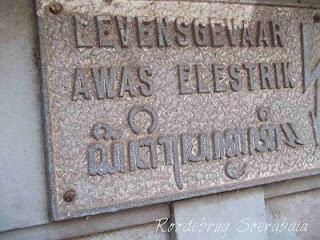 plakat kuno yang tertempel di gardu listrik belakang pabrik.tulisan jawa: sing ngemek matek. foto: Surya