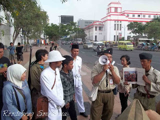 Prof Indroyono memberi penjelasan pertempuran Internatio Jembatan Merah.foto: Silvia