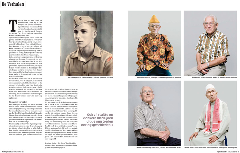 Fotografer Marjolein van Pagee memotret veteran veteran yang pernah saling bertempur bersama dan melawan sang Kakek di tanah koloni Indonesia